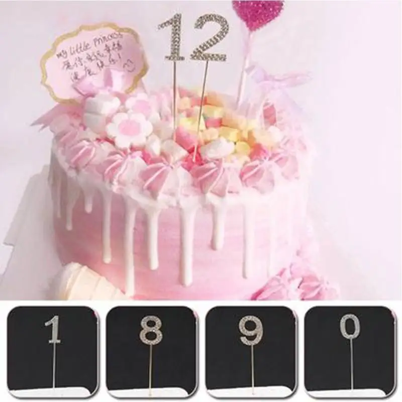 Цифровой Топпер для торта 0-9 Стразы, инструмент для украшения торт...