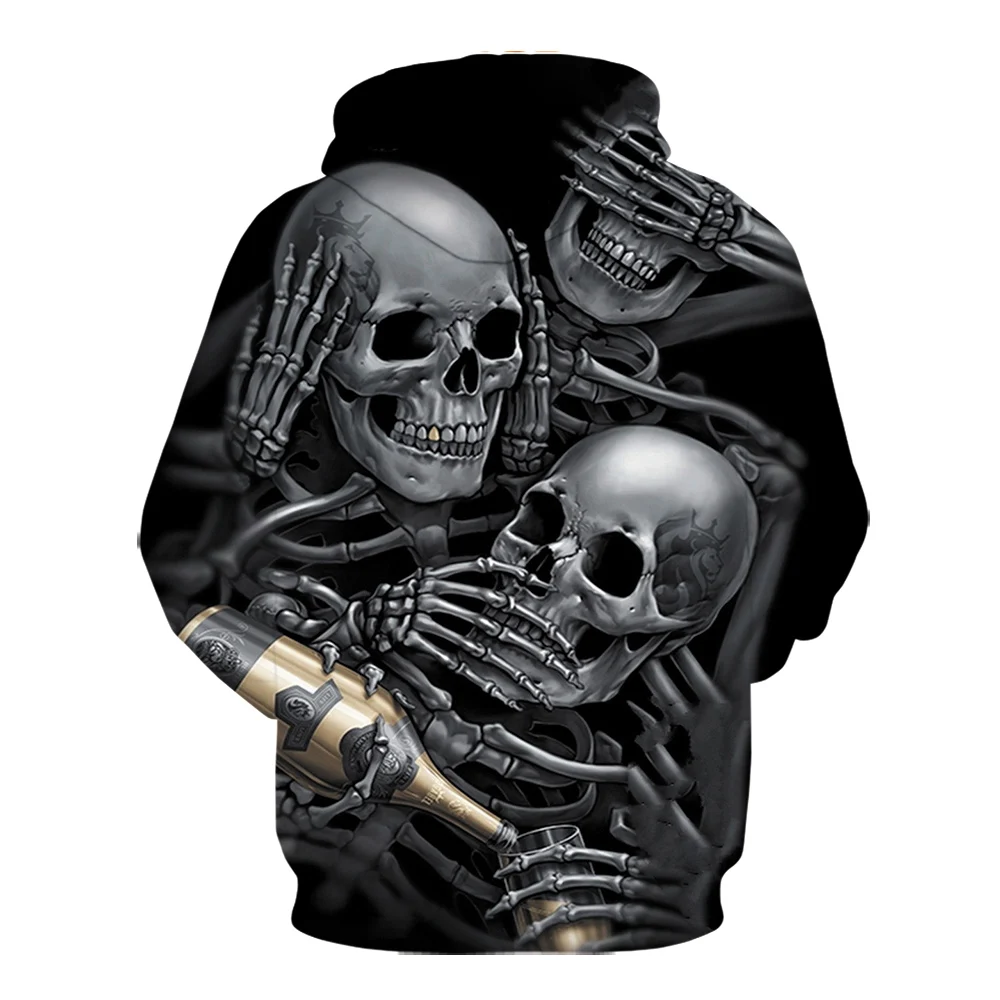 Толстовка Мужскаяженская с 3D-принтом черепа, свитшот с капюшоном, худи, костюм в стиле хип-хоп, куртка, 2021