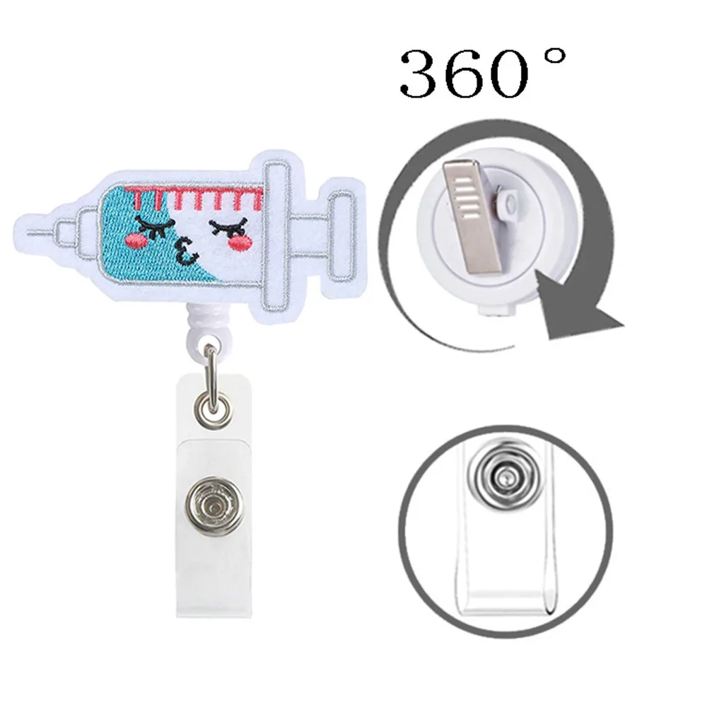 Выдвижной легко тянущийся бейдж с мультяшной вышивкой из фетровой т...