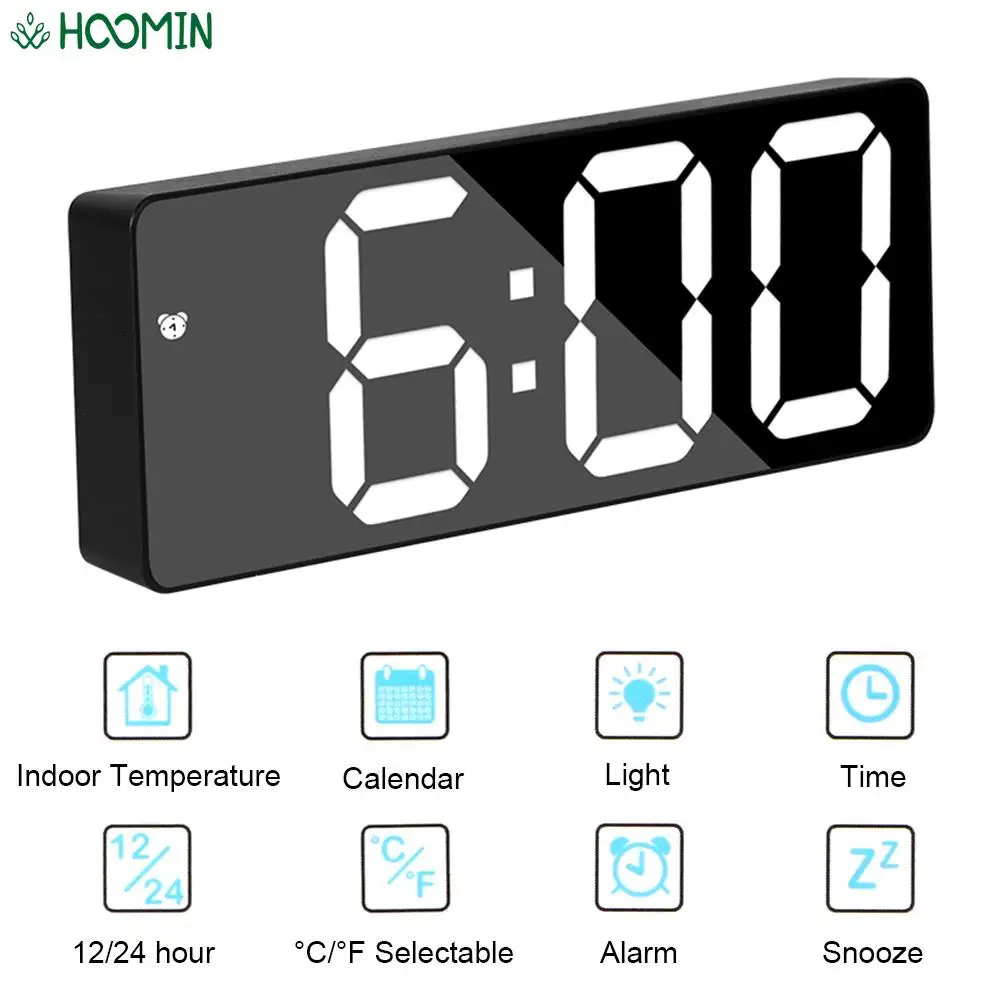 Светодиодный электронный настольный часы Повтор акриловый/зеркальный будильник Голосовое управление Отображение времени температуры цифровой Reloj DespertadorОсобенности: