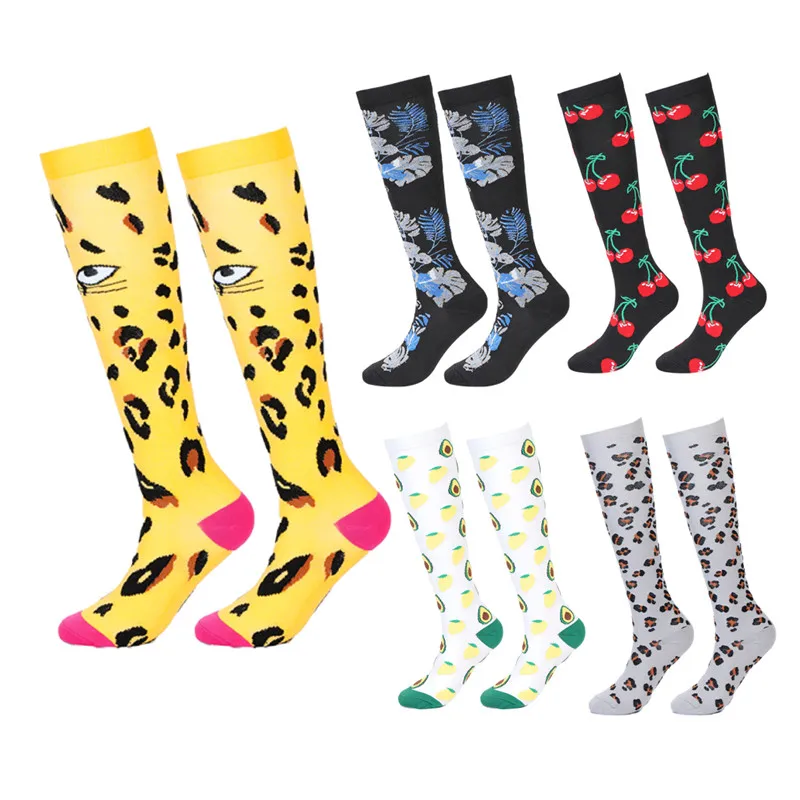 Новые Компрессионные носки, женские велосипедные носки, спортивные мужские Компрессионные носки с изображением животных, отеков, диабетиков, варикозного расширения вен, бега, марафона