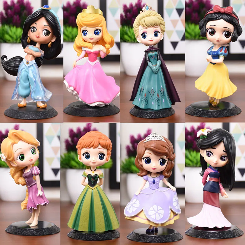 Disney Q Posket Принцесса Белоснежка Эльза Анна Рапунцель Жасмин Золушка София Мулан ПВХ фигурки модели игрушки торт Декор куклы подарок