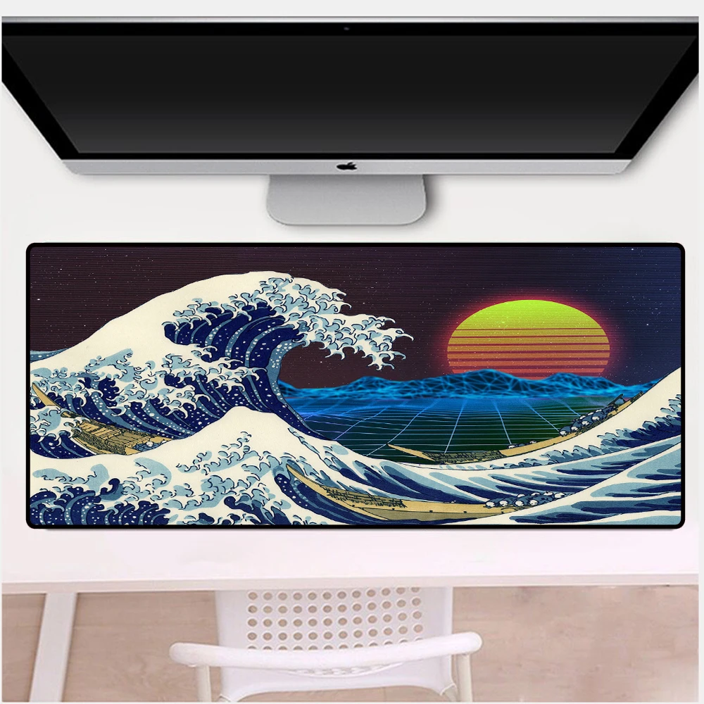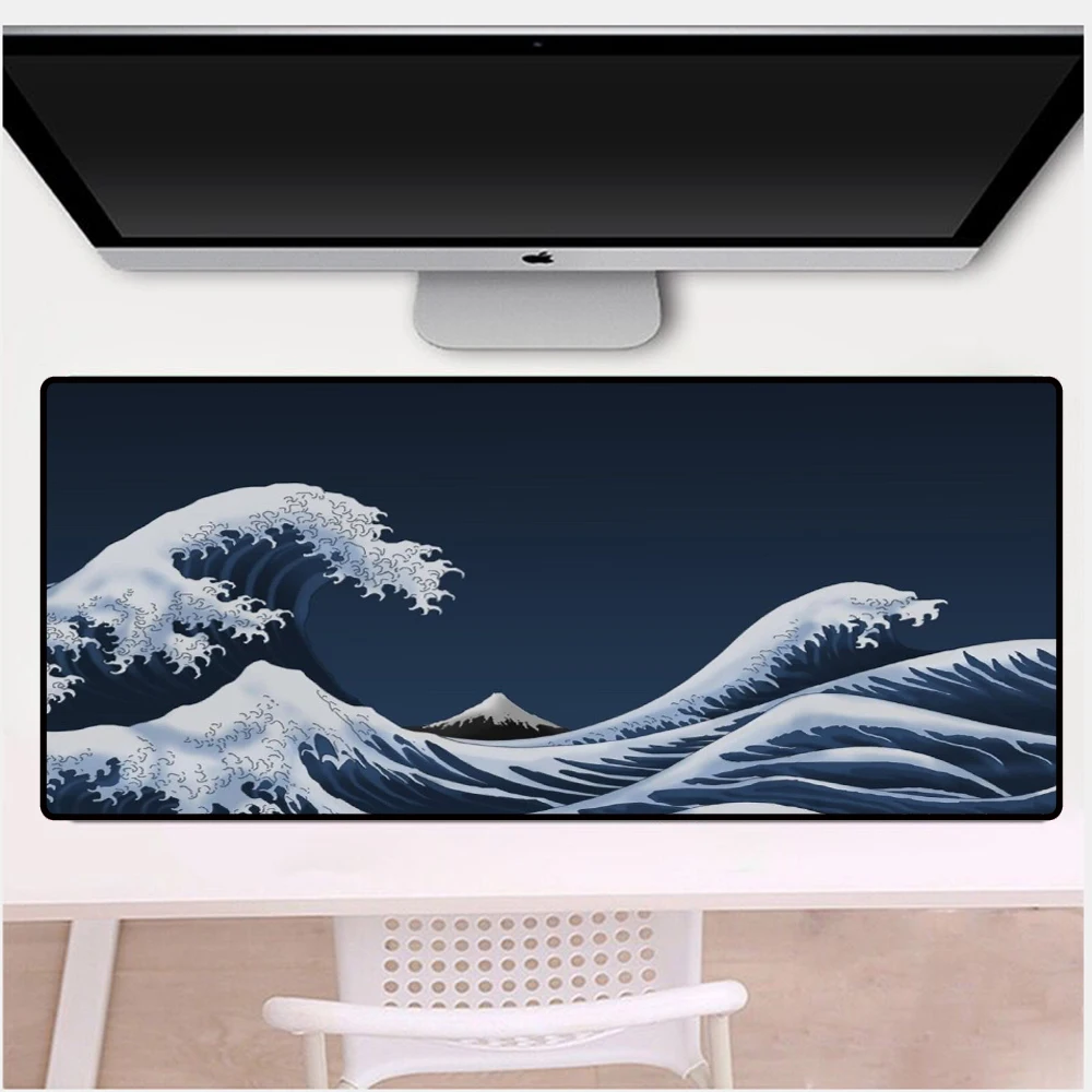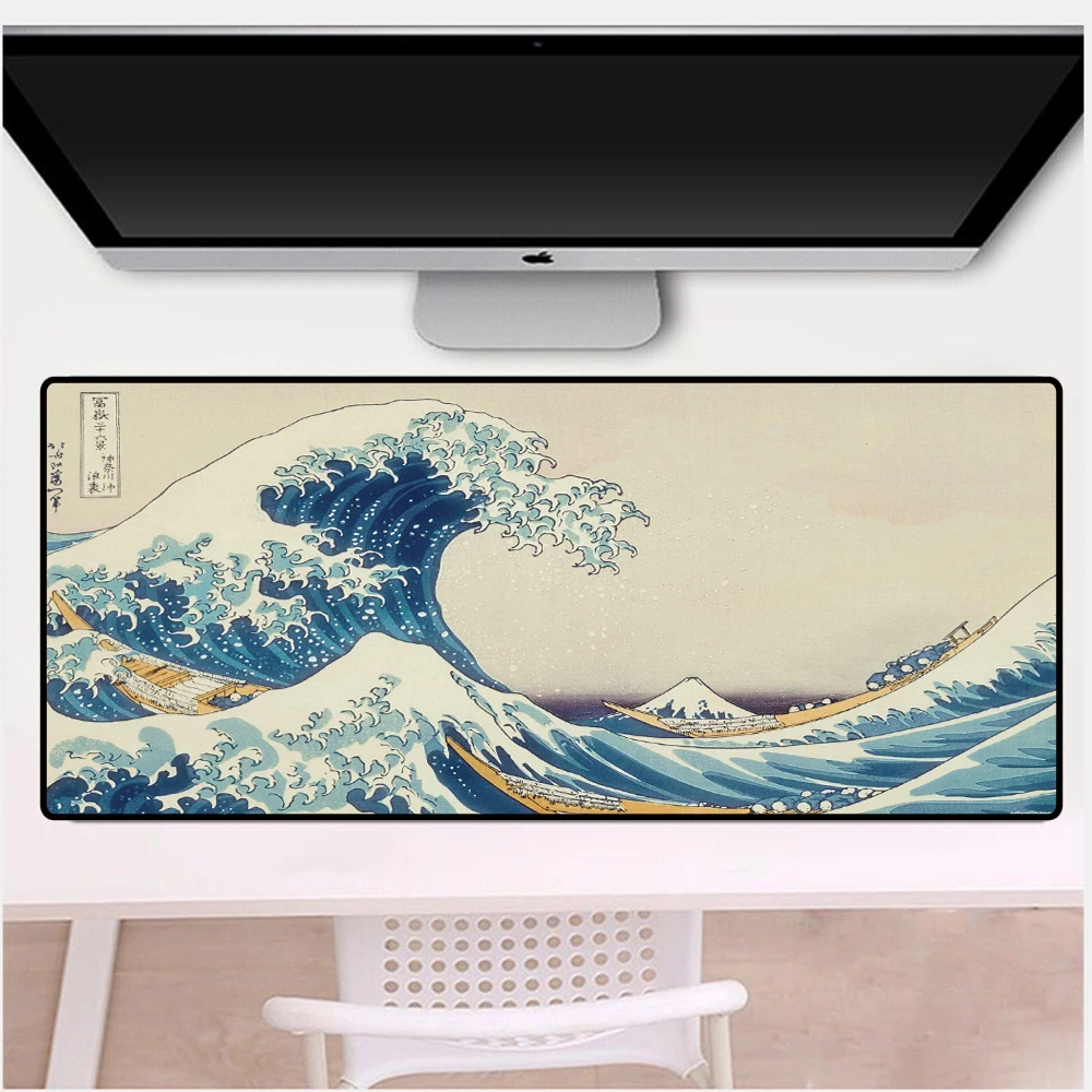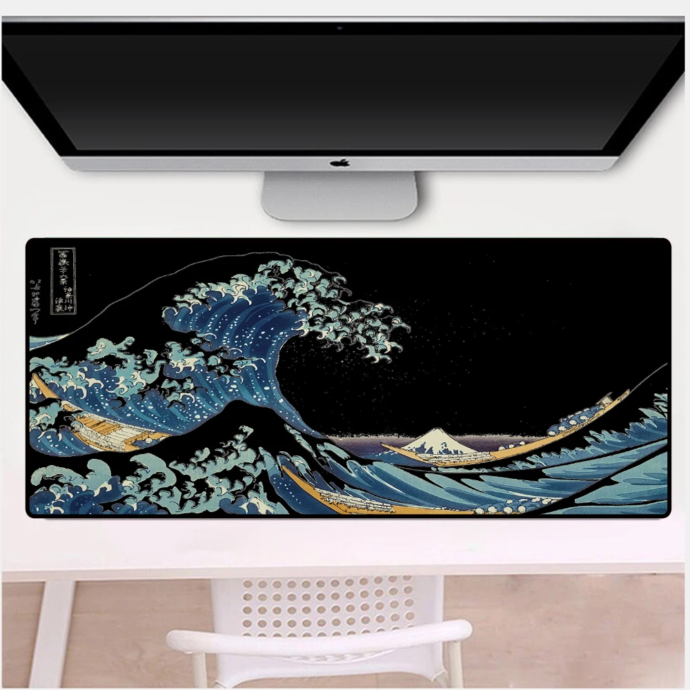 Коврик для мыши с изображением волн канагава, большой резиновый игровой коврик в японском стиле, компьютерные аксессуары