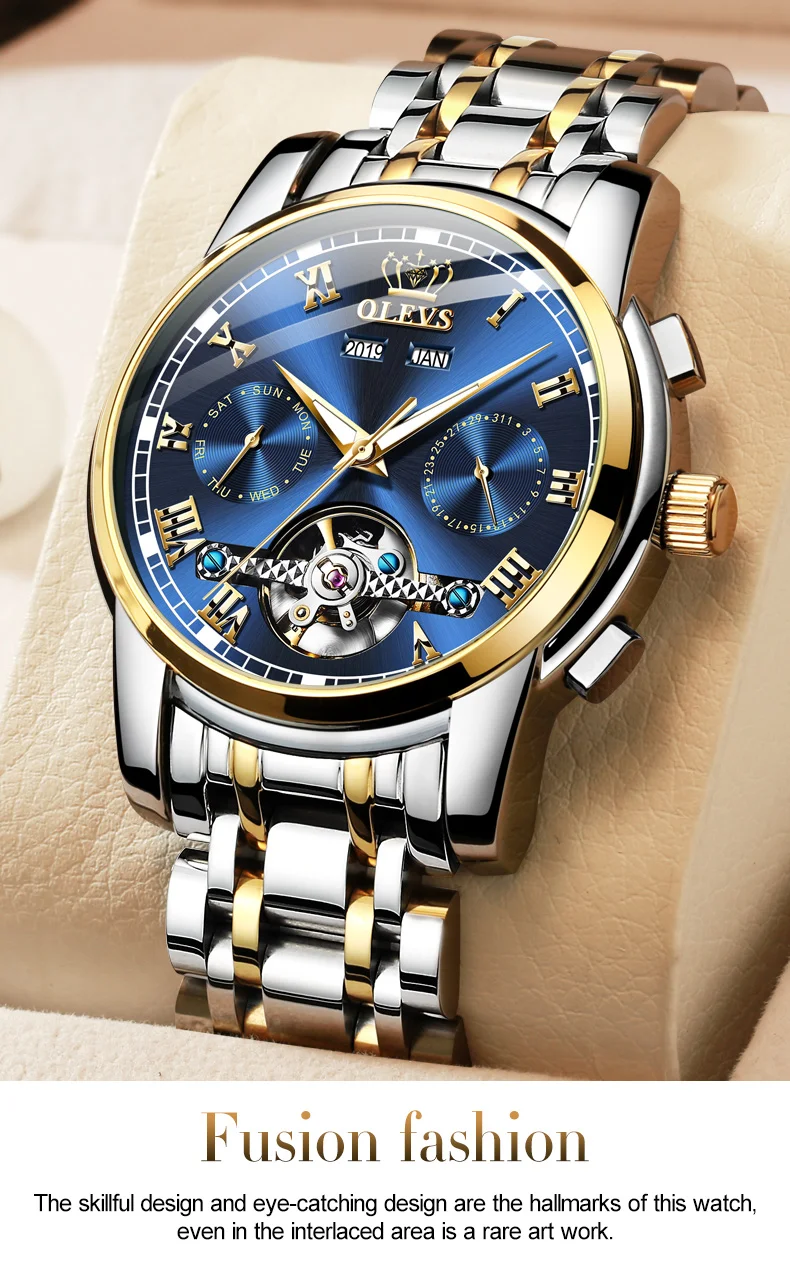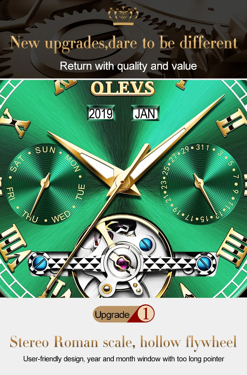 Мужские механические часы OLEVS, автоматические часы из нержавеющей...