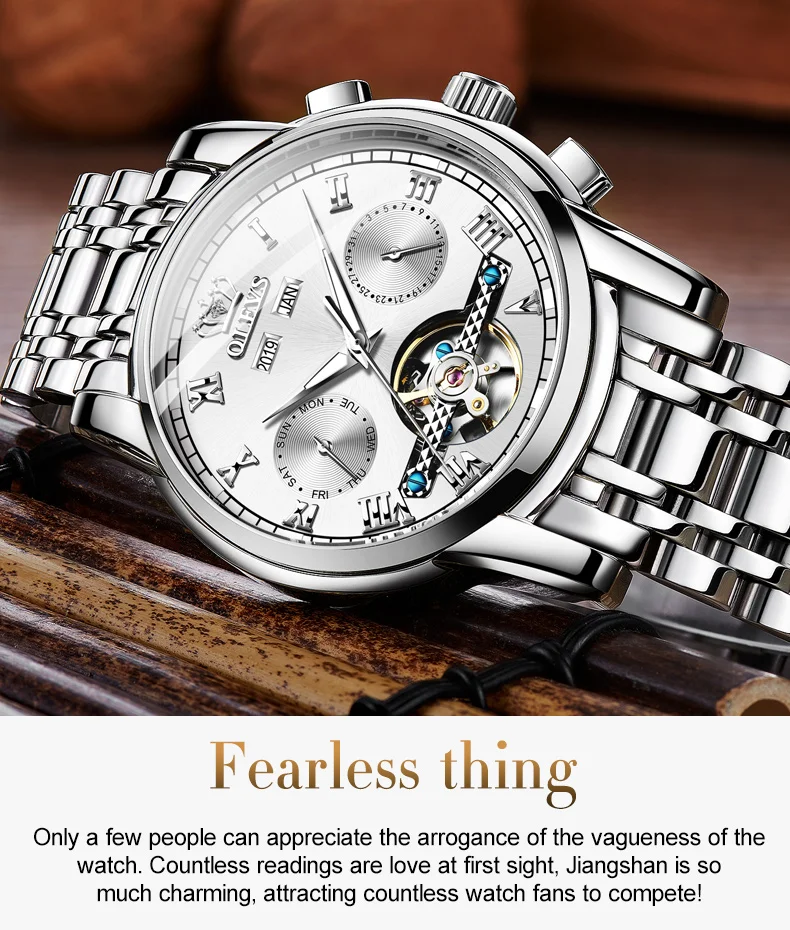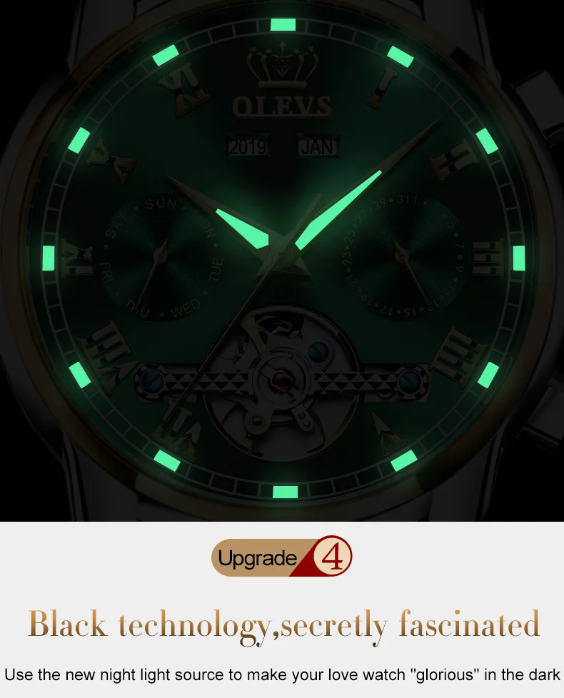 Мужские автоматические механические часы OLEVS, из нержавеющей стал...