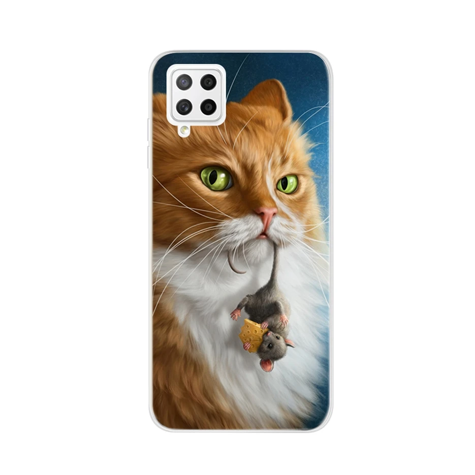 Чехол для Samsung Galaxy A22 4G, мягкие силиконовые чехлы, чехол с милым котом для Samsung A22 A 22, зеркальные Чехлы для телефона GalaxyA22, бампер с мультяшным рисунком