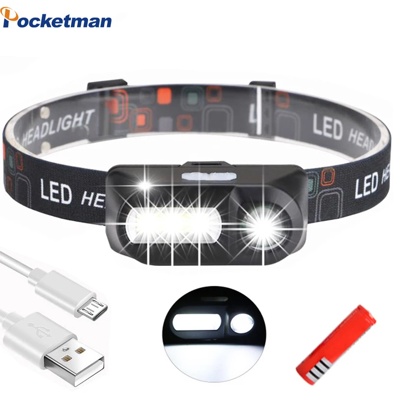 Супер яркие фары XPE + COB головной светильник походный светильник зарядка через USB головки вспышки света светильник Водонепроницаемый 18650 фара Фонари