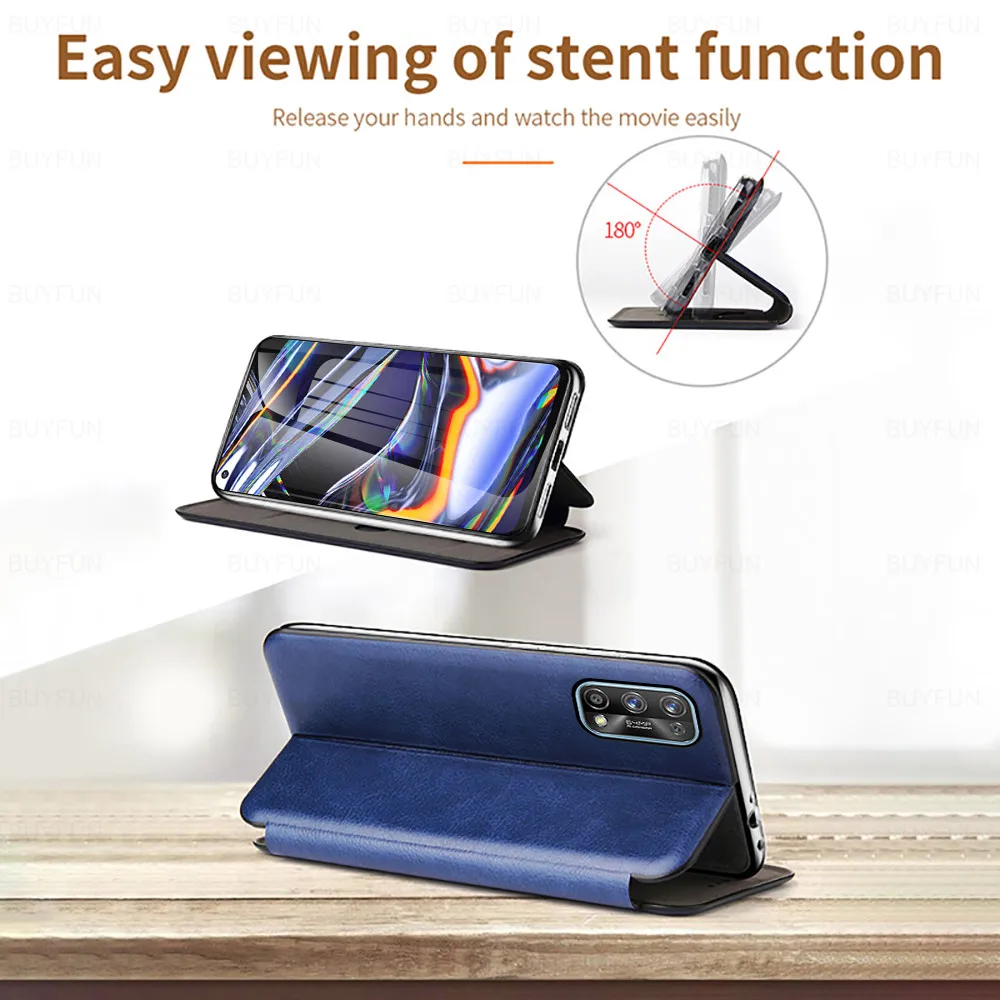 Кожаный чехол realmi 7 pro, Магнитный кошелек, флип-чехол с держателем для карт для Oppo realme 7 5 6 6i c3 pro a52 a72 a92 a9 a5, чехол для телефона