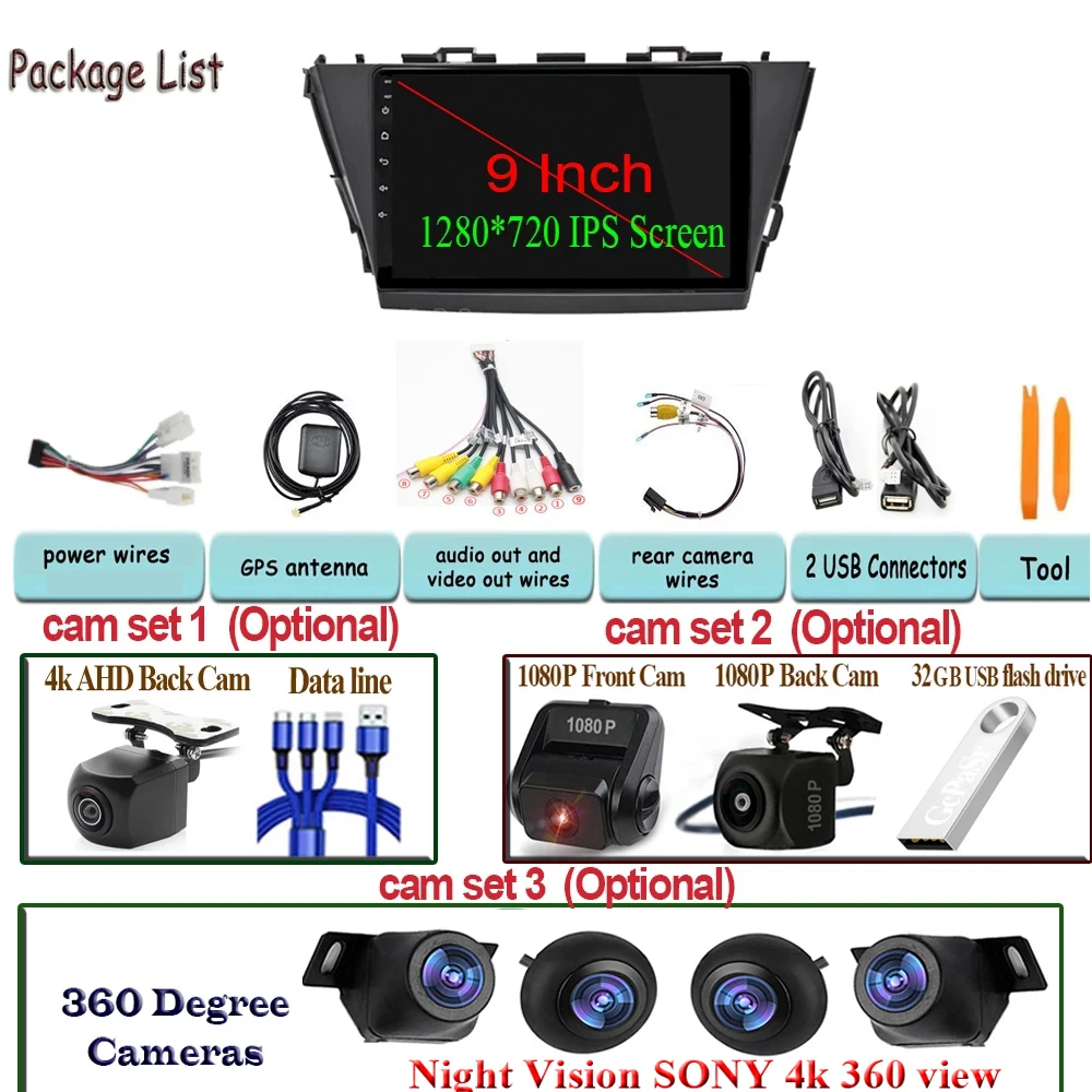 Автомобильный стерео Мультимедийный проигрыватель 360, камера для H...