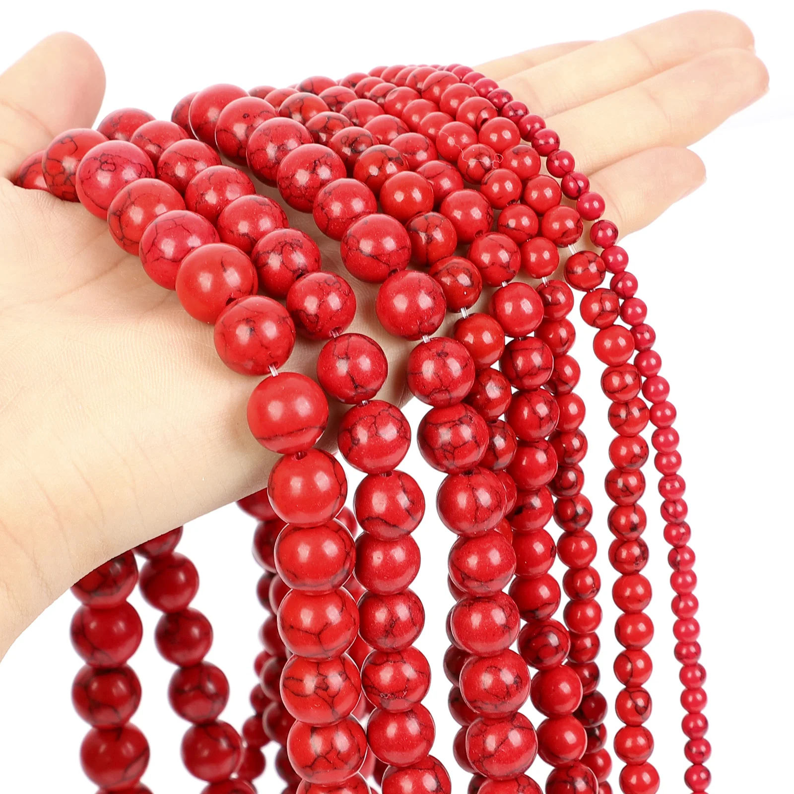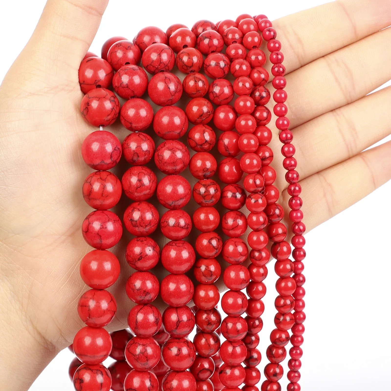Красные американские бирюзы, зеркальные бусины, россыпью бусины для...
