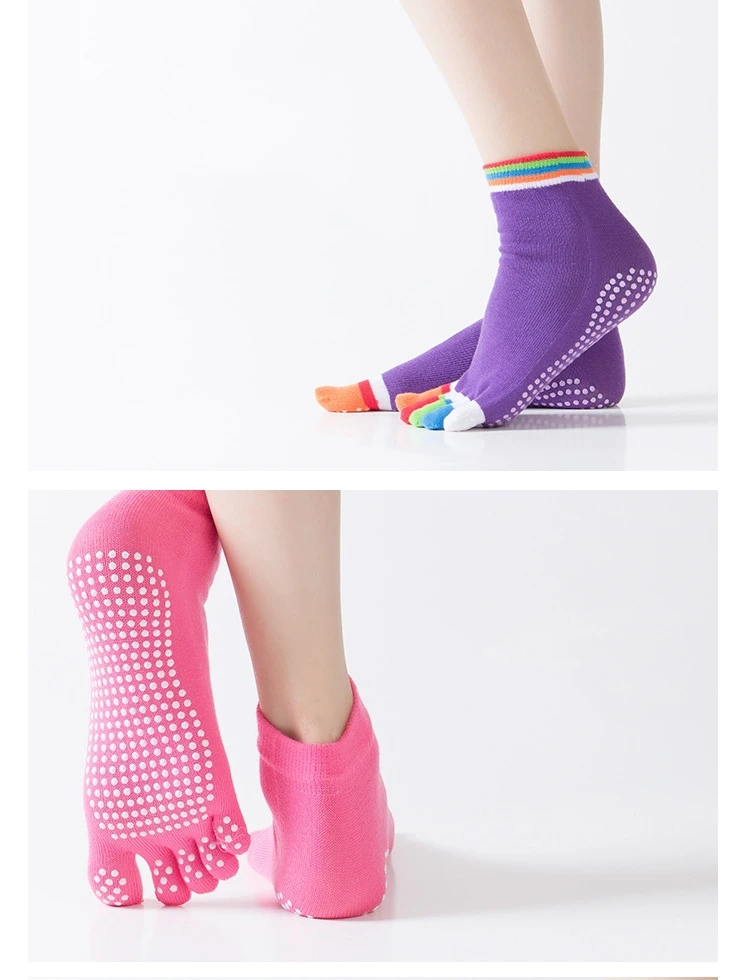 Спортивные носки, женские нескользящие носки для йоги, балетные дышащие женские спортивные строгие носки с 5 пальцами, цветные эластичные