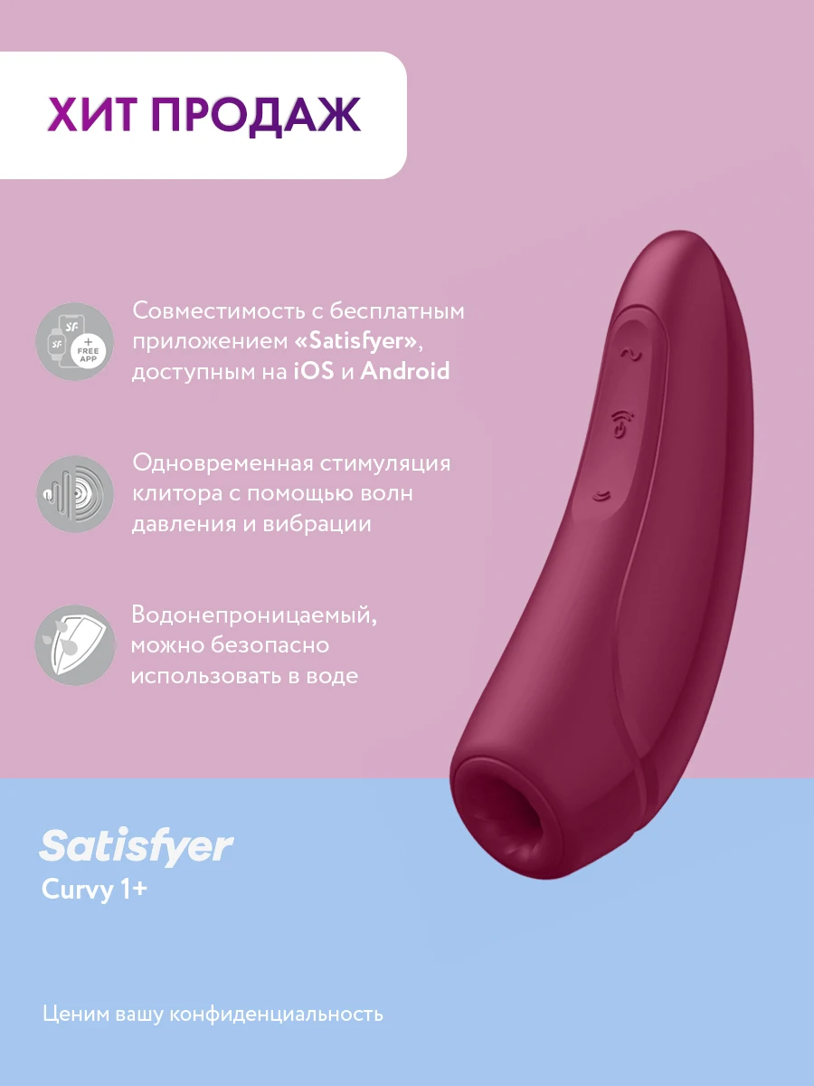Страна: RU Color: Maroon stimulator Satisfyer curvy 1 + Ships From: Russian Federation Доставка: в пункт выдачи 20.08.2021