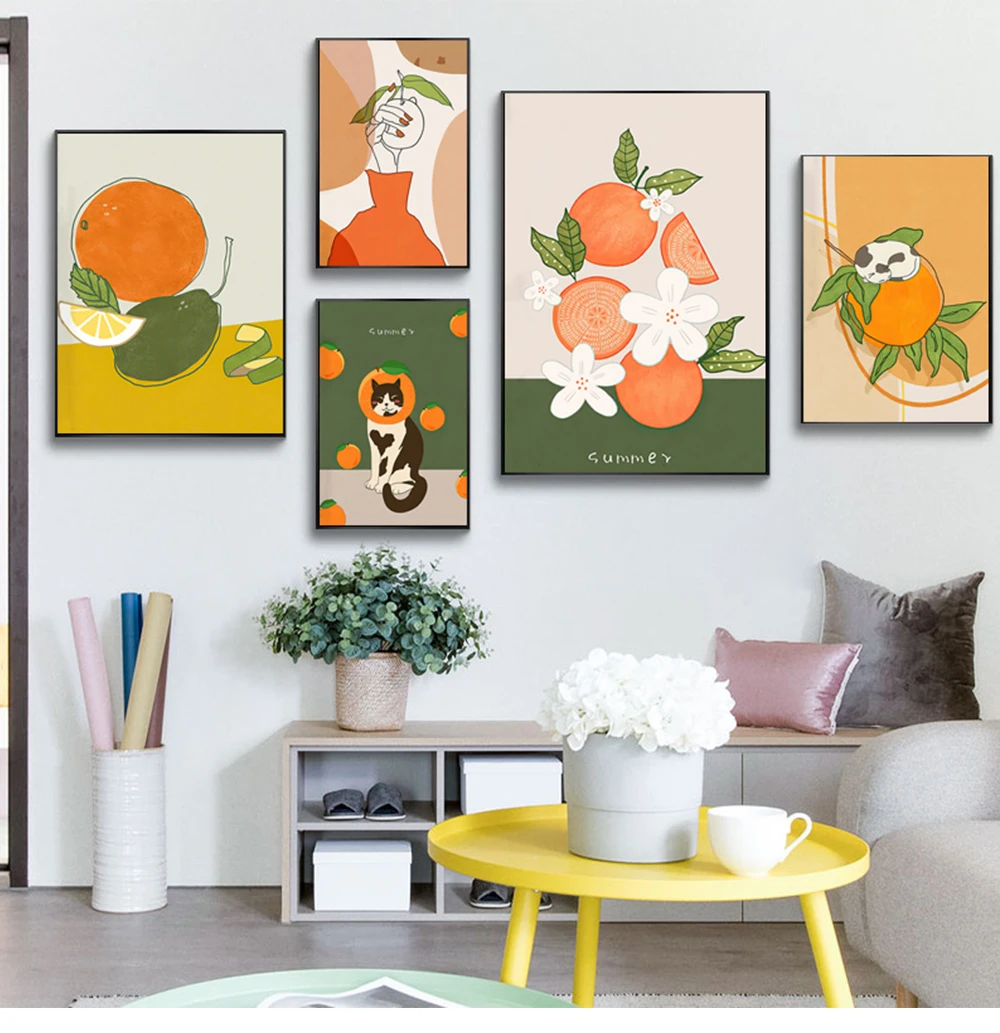 Абстрактные фрукты, оранжевое дерево, холст, живопись, настенное ис...