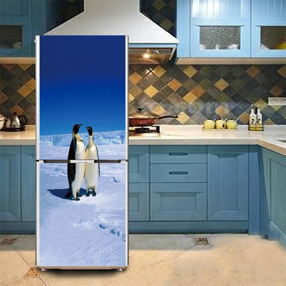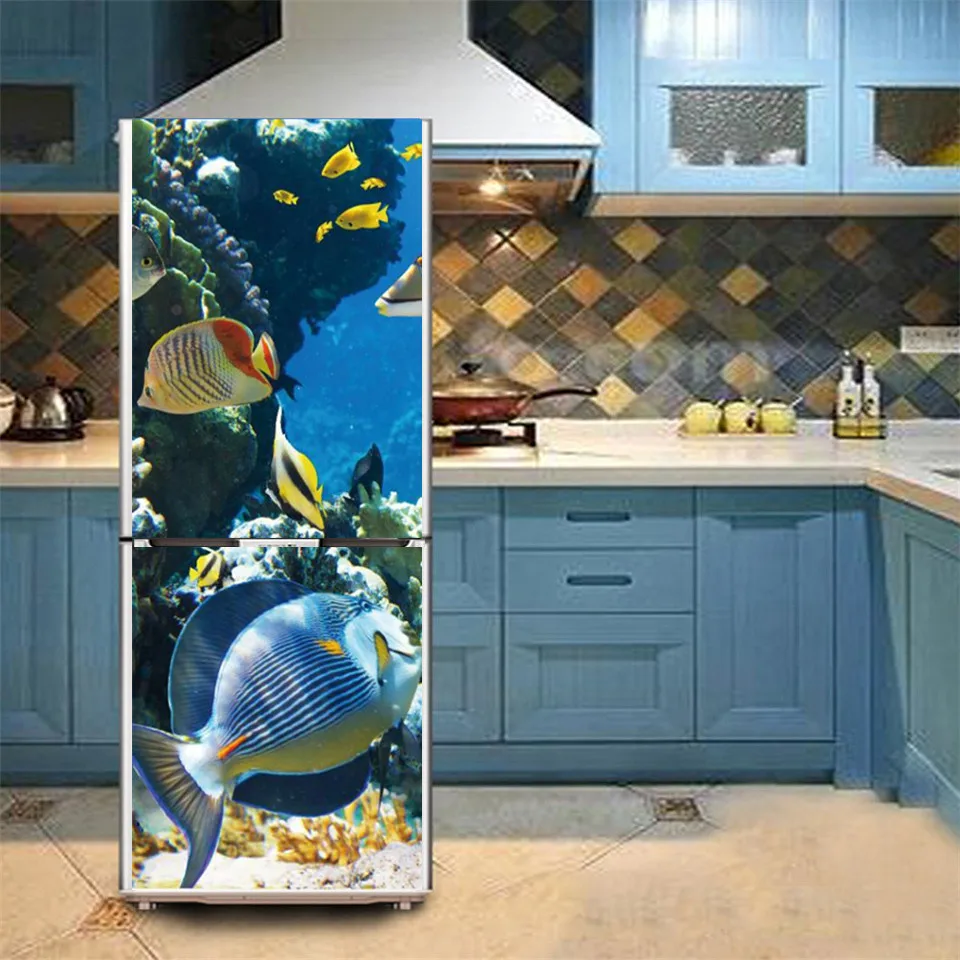3D ПВХ обои в виде рыбок и пингвинов для холодильника, самоклеящиес...