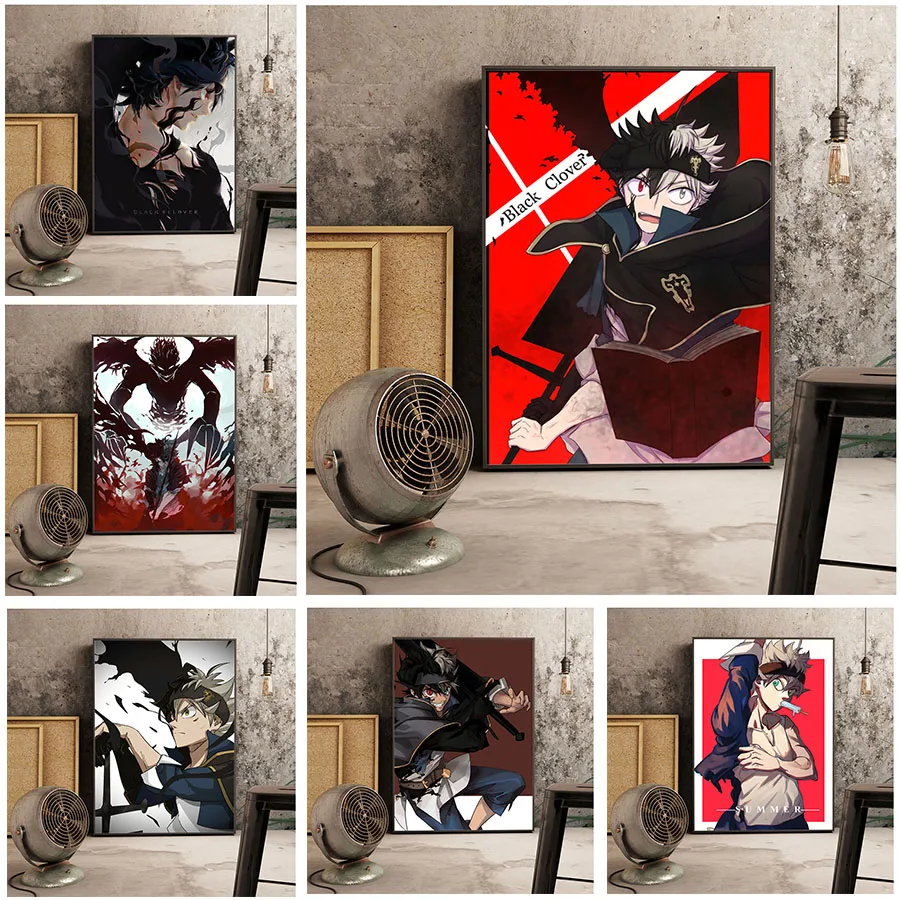 Новый плакат аниме с черным клевером, мультяшный холст, настенное искусство, декор для кафе, бара, отеля, общежития, спальни, картина, современный