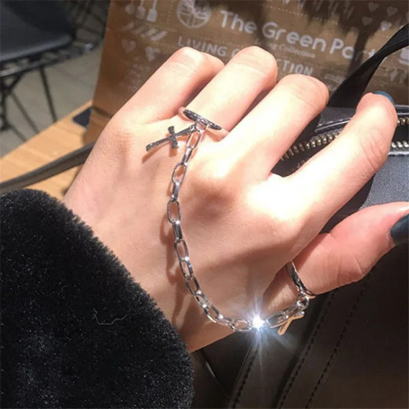 Панк Хип-хоп кольцо с крестом ручной серебро Цвет Посеребренная Ретро цепочка на палец регулируемые кольца, ювелирное изделие, подарок для мальчиков и девочек кольцо вечерние кольца