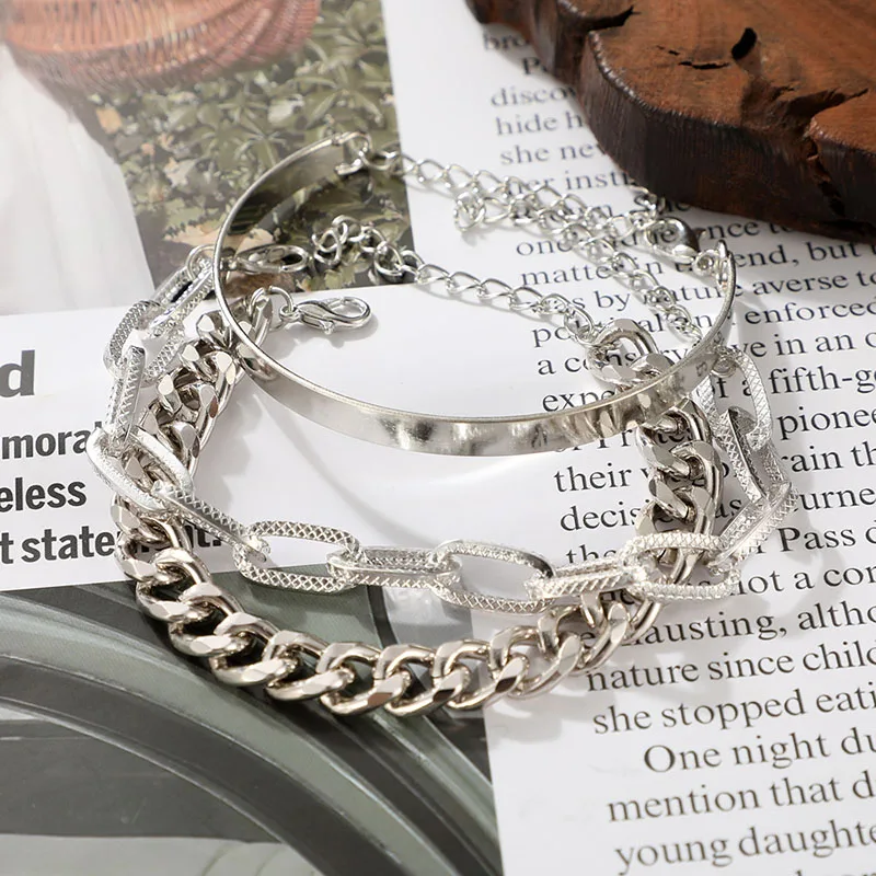Набор женских браслетов с цепочкой из кубинской цепи, в стиле панк