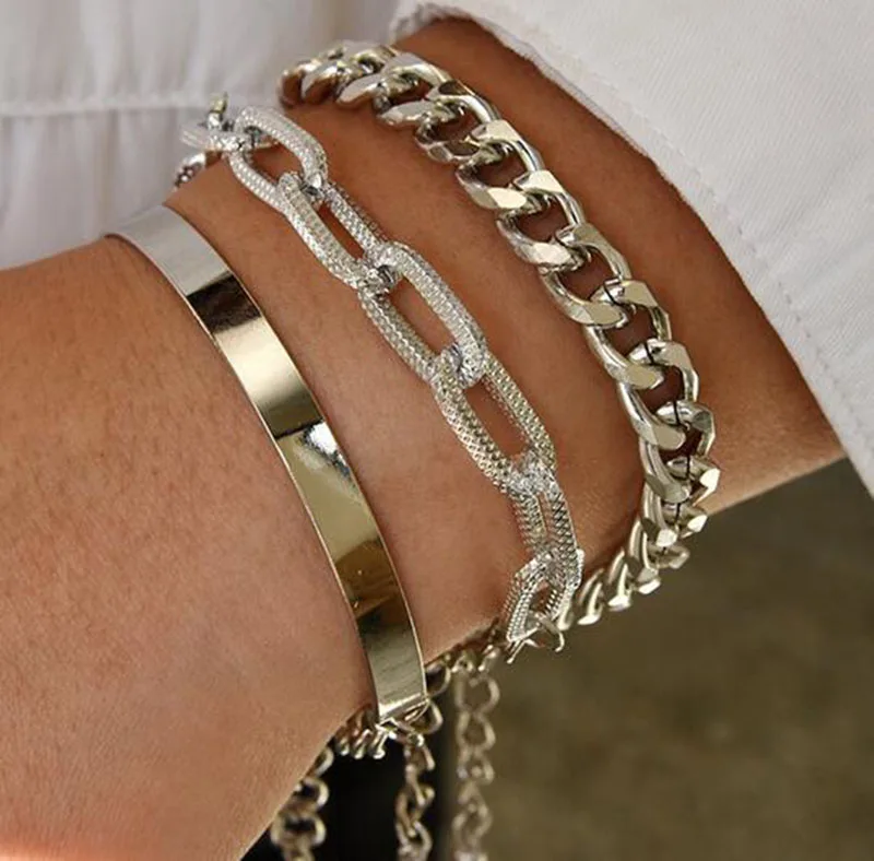 2021 модные Многослойные золотые браслеты для женщин, Набор браслетов-цепочек из кубинской цепи, женские браслеты, модные ювелирные изделия