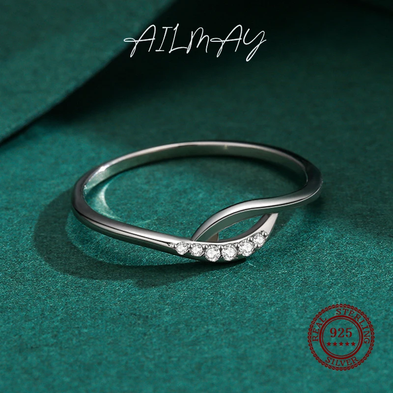 Ailmay натуральная 925 пробы Серебряные ювелирные изделия элегантный блеск CZ переплетенные кольцо для Для женщин минималистский ювелирные украшения 2021 Новый стиль
