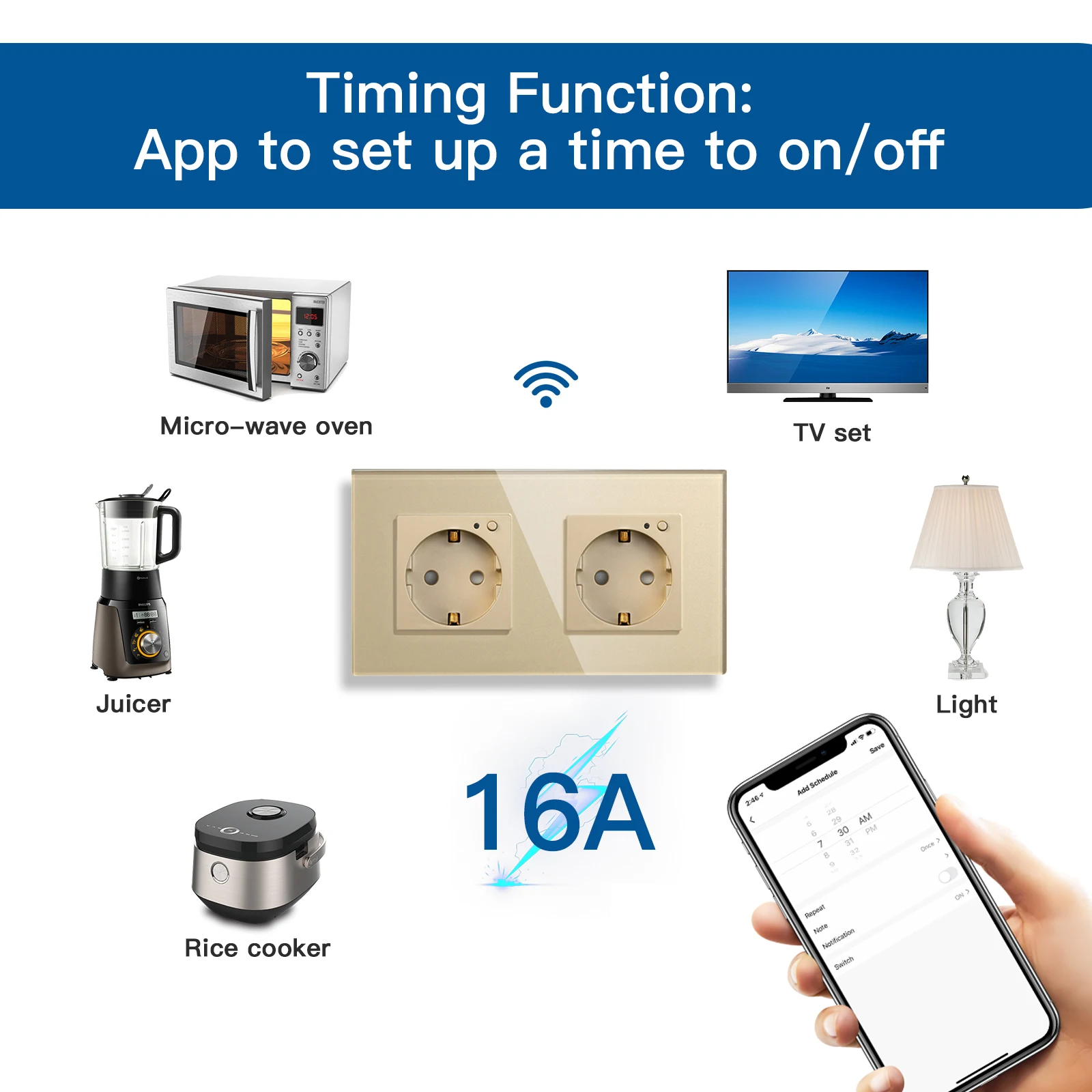 Двойная настенная розетка BSEED Smart, европейская розетка с двойным Wi-Fi, розетки с тройным кристаллом, стеклянные розетки с синей подсветкой, Tuya Smart Life