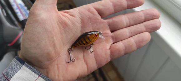 классный мини крэнк. весит 4,4 г если вешать большой карабин 12мм с вертлюжком медленно тонет, и игра ме очень быстрая и не очень амплитудная. Ярко выраженная но сдержанная. Если вешать американку 10мм без вертлюжка, то медленно всплывает, и игра очень активная частая и размашистая, аж слышно как шарик гремит. Заводится с самой малой скорости при слабой огрузке. заглубляться будет не сильно, до 0.5-0.6м может... Если прям быстро потянуть он иногда наклоняется на бочок под 45° и делает дугу. то есть при подтягивании удилищем будет меняться характер игры. Передний шарик в корпусе на 5 штуках таких воблеров залипший. 5 из 5. у некоторых по центру, у некоторых сильно на боку. но на игре не сказывается эта особенность. Очень понравились. Продавец красавчик еще и пару чарвяков силиконовых в подарок подложил. Мелочь а приятно. За свою цену рыбки огонь.