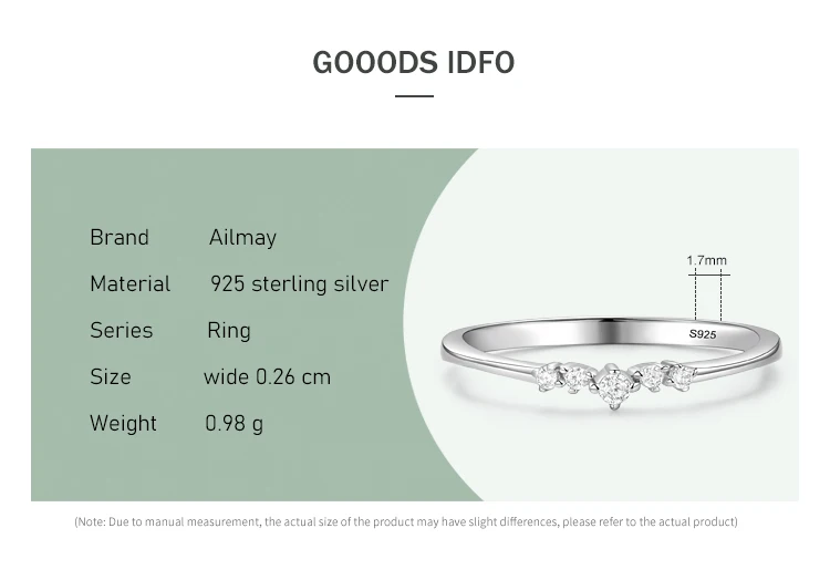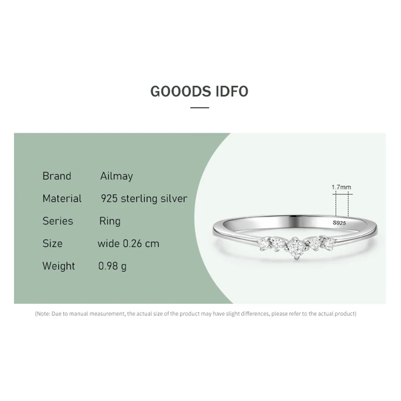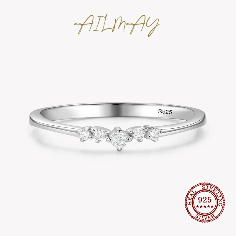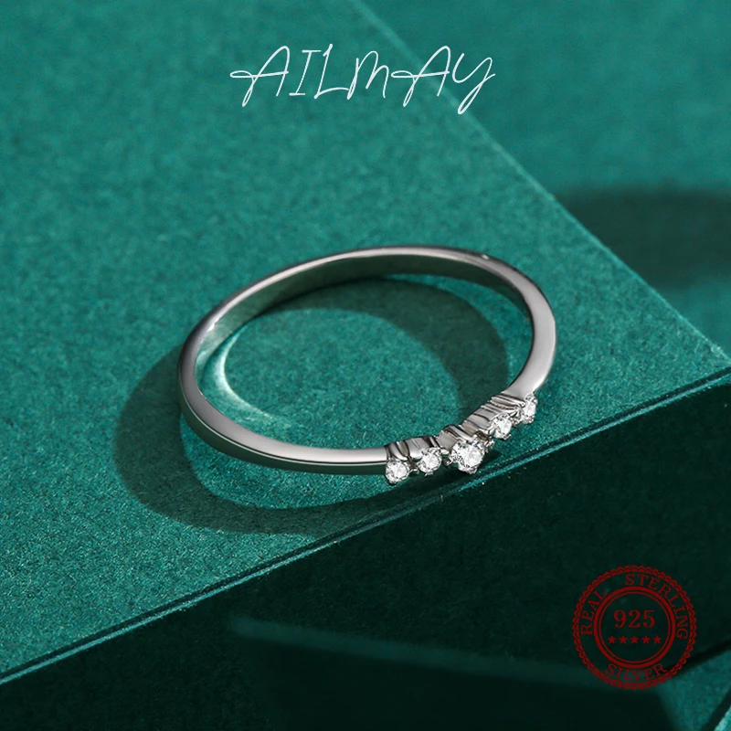 Ailmay Новое поступление простой кубический цирконий модный шарм 925 Стерлинговое Серебро штабелируемые кольца для женщин Свадебные обручальные ювелирные изделия