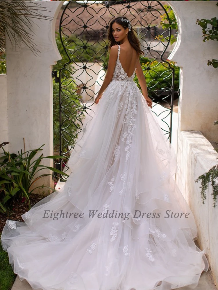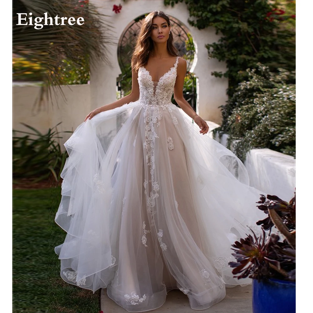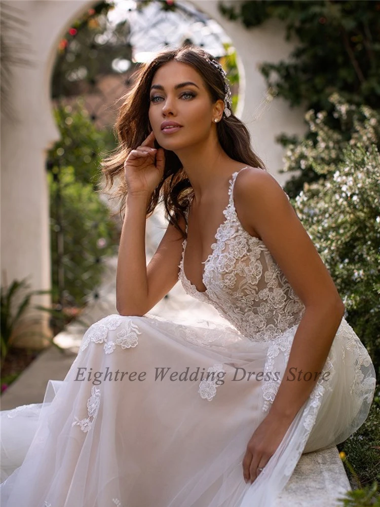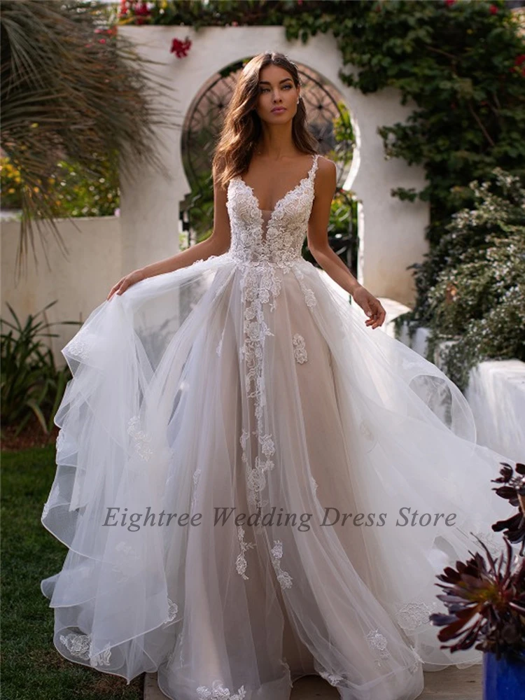 Eightree Новый Спагетти 3D платья с цветами для свадебного торжества платье без рукавов в богемном стиле Бальные Свадебные платья Кружевная аппликация для принцессы страны; Обувь под свадебное платье для невесты