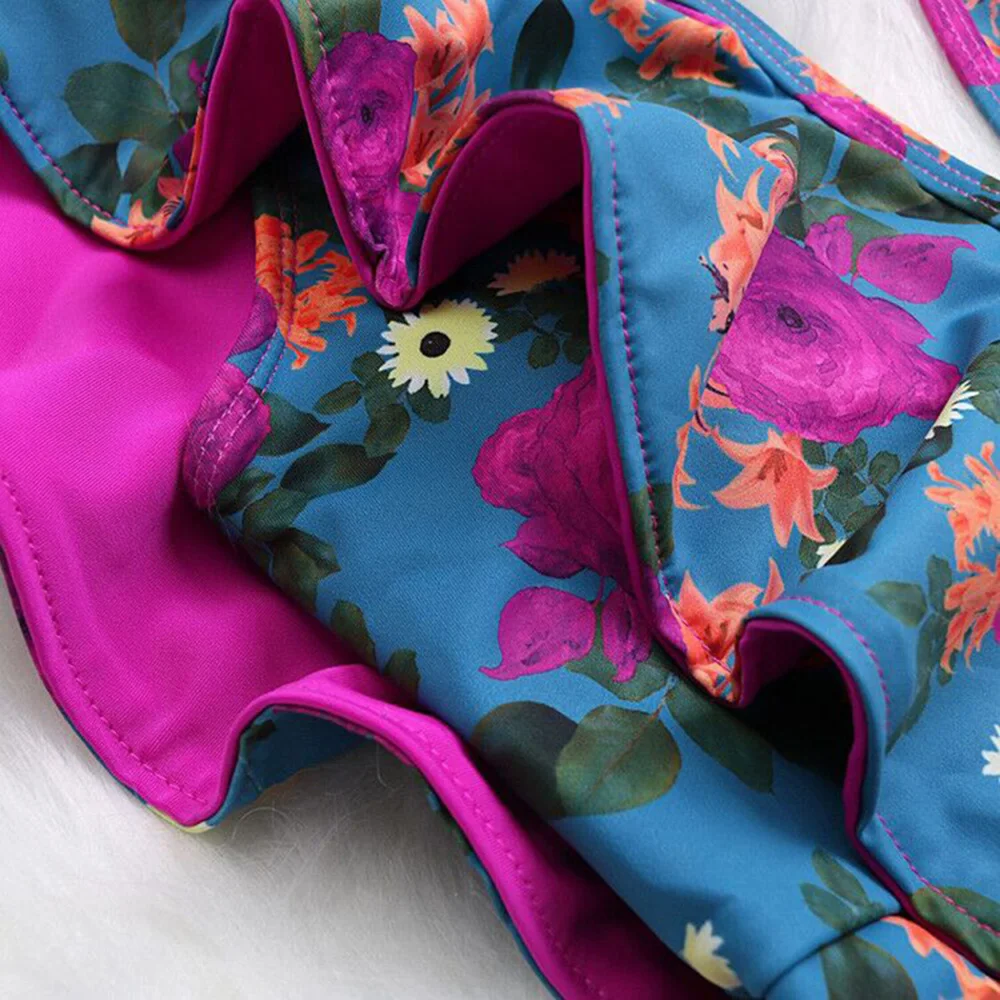 Женский слитный купальник, с оборками и цветочным принтом, с открыт...