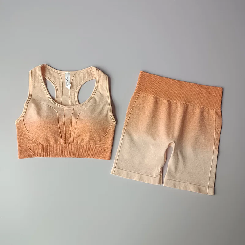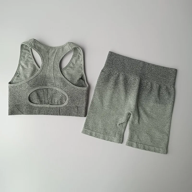 Бесшовные женские спортивные костюмы для йоги, фитнеса, спортивная одежда для тренировок, летние шорты для бега с высокой талией + спортивный бюстгальтер пуш-ап