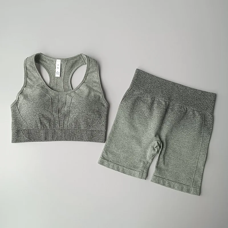 Бесшовная Женская Спортивная одежда для фитнеса, одежда для тренировок, летние шорты для бега с высокой талией + спортивный бюстгальтер пуш-ап, комплект для спортзала