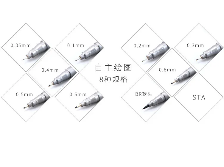 1 шт. пигментный лайнер Pigma Micron, чернильный маркер, ручка 0,05 0,1 0,2 0,3 0,4 0,5 0,6 0,8, разные наконечники, черный тонкий фломастер, ручки для набросков