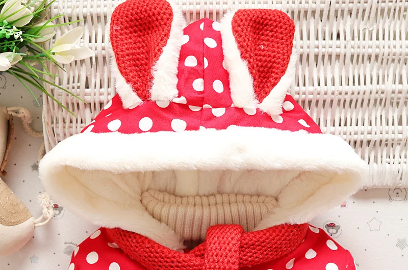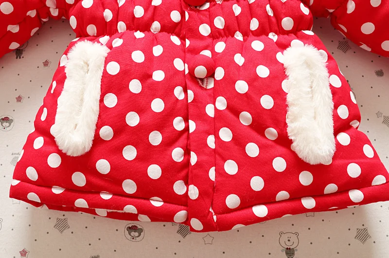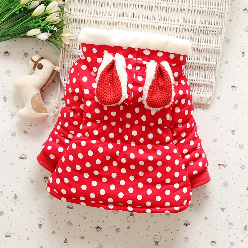 Детская парка в горошек с капюшоном и 3D ушками для девочек, зимняя...