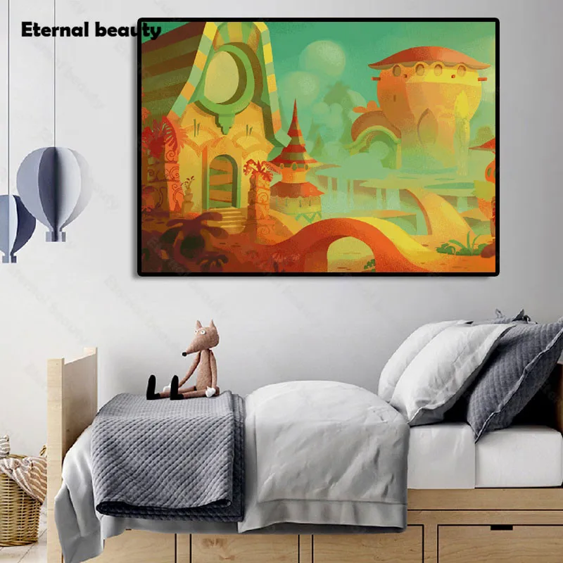 Алмазная живопись мультяшный дом дерево кино плакат Алмазная вышивка полная круглая Алмазная мозаика разноцветный сказочный мир
