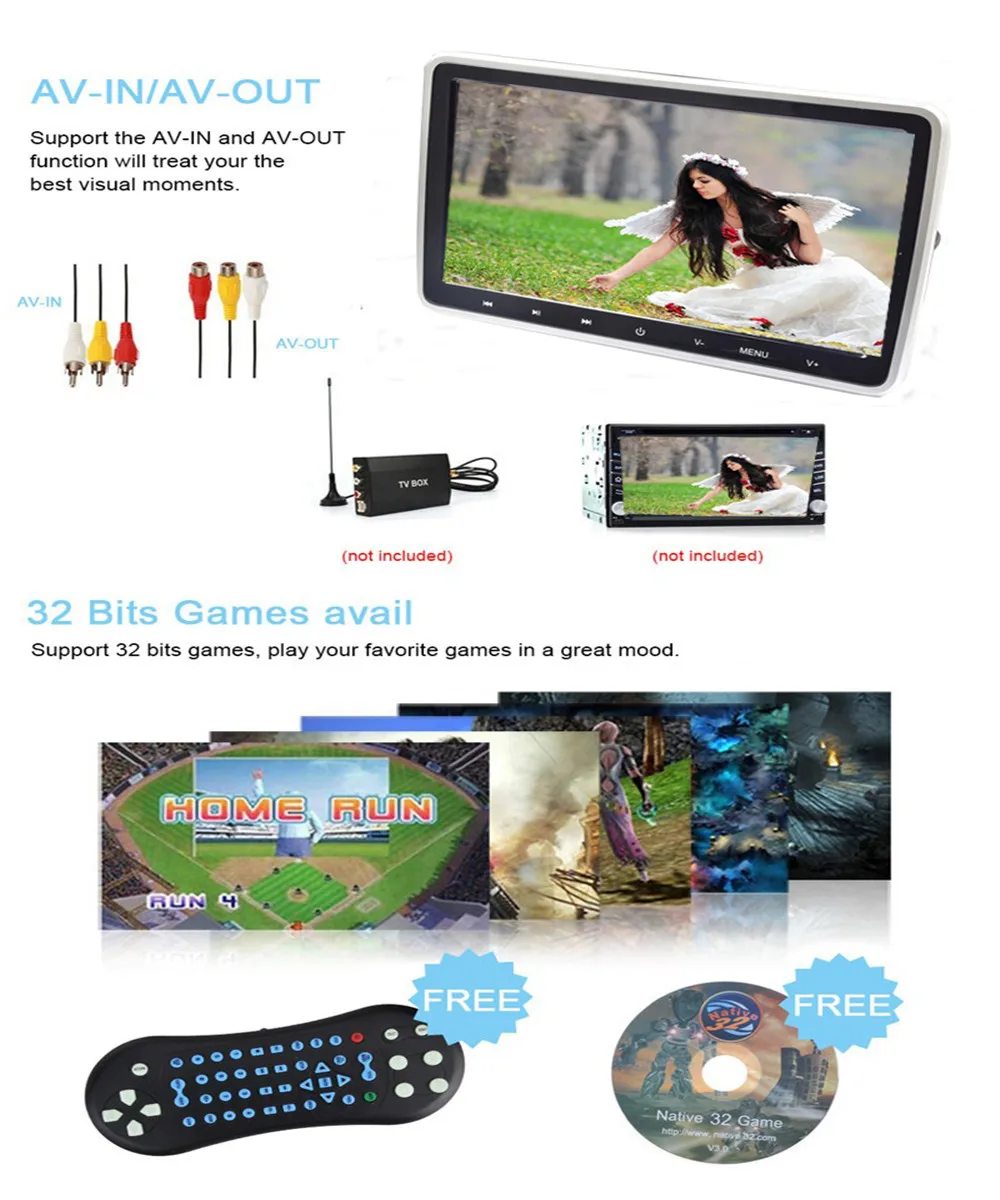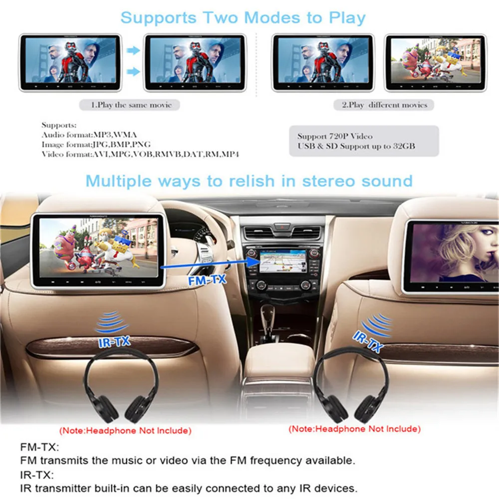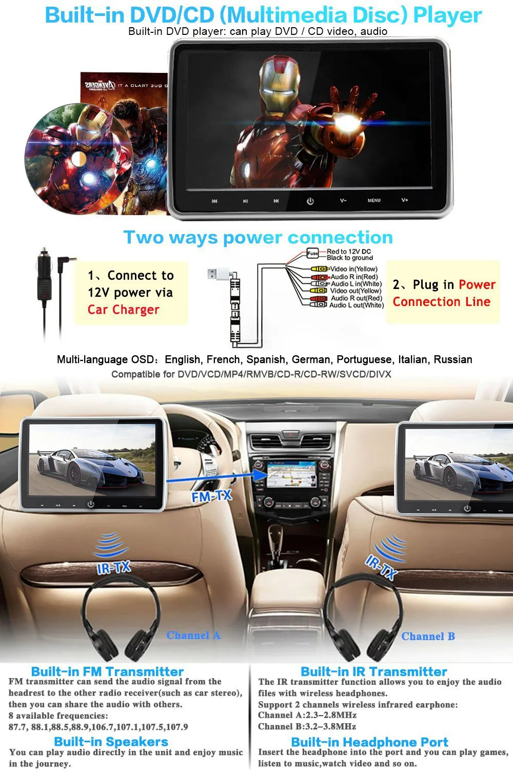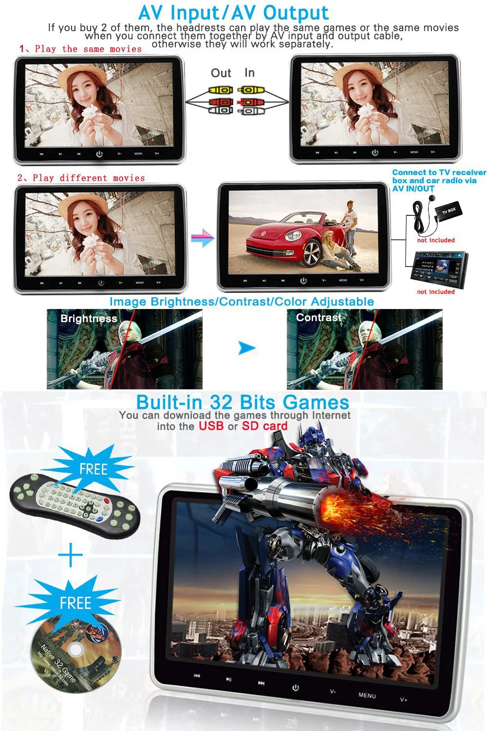 10,1 дюймовый автомобильный монитор на подголовник Автомобильный мультимедийный MP5 DVD-видеоплеер TFT HD 1024*600 сенсорный экран USBSDHDMIIRFM игровой пульт дистанционного управления