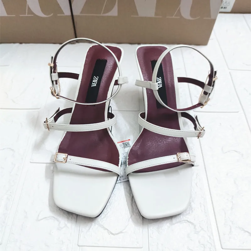 Сандалии ZA женские с открытым носком, босоножки с пряжкой одно слово, высокий квадратный каблук, сказочные римские модные туфли, лето 2021