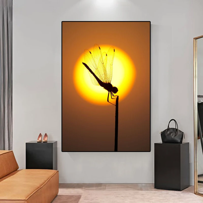 Картина на холсте с закатом, пейзажем, абстрактное животное, стрекоза, плакаты и принты, настенные картины, Современное украшение для гостиной, дома