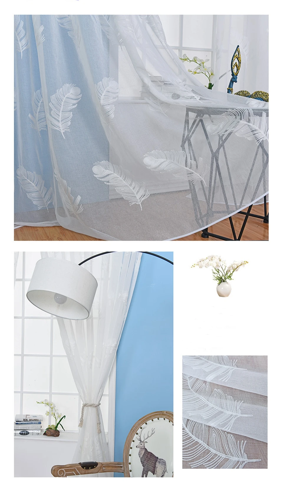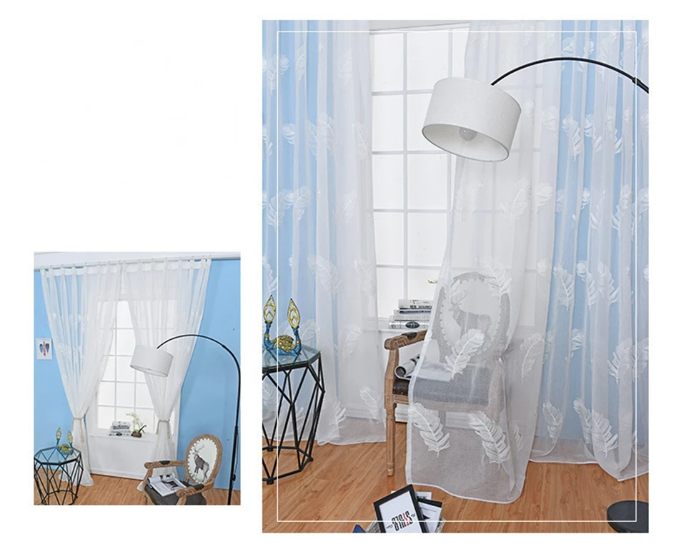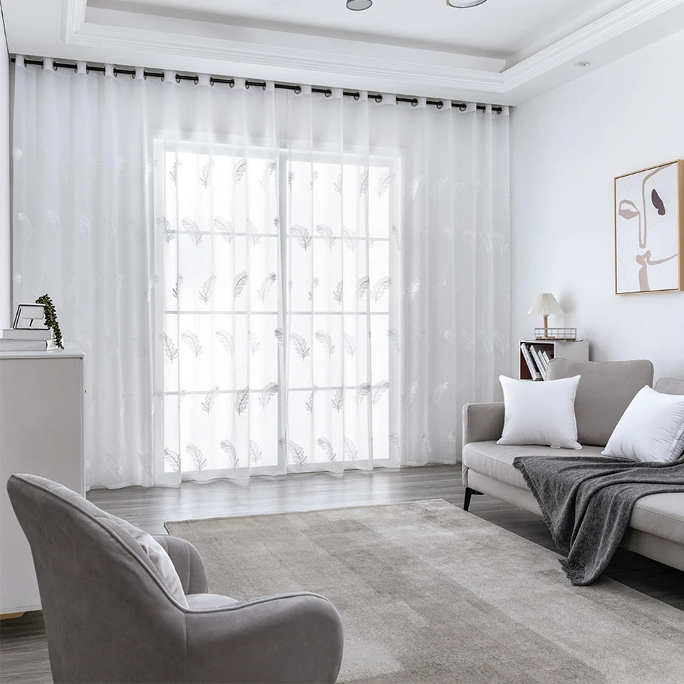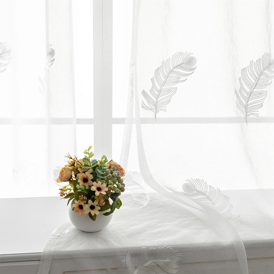 Вышитые тюлевые шторы для гостиной, спальни, кухни, белые прозрачные шторы с перьями на окна, домашний декор