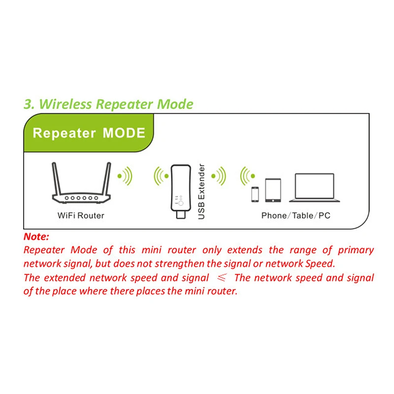 1. Режим реле: Беспроводной до беспроводной: После получения беспроводного сигнала от оригинального беспроводного маршрутизатора ретранслятор снова передает новый беспроводной сигнал, чтобы усилить и расширить покрытие. Совместимость со всеми беспроводными маршрутизаторами (вам нужно знать имя пользователя и пароль беспроводного сигнала), легко настроить. Продукт поставляется с руководством. Мобильные телефоны, компьютеры и планшеты могут быть настроены, и все беспроводные устройства должны быть установлены один раз.