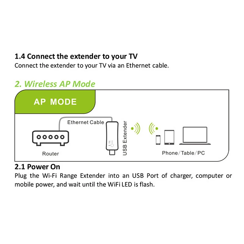 2. Режим AP: подключен к беспроводной сети: после подключения сетевого кабеля к компьютеру можно напрямую подключать к Интернету без набора номера, например, в гостиницах, квартирах, арендных домах, офисах, И соседям, чтобы поделиться широкополосным доступом и т. д., нужно только подключить сетевой кабель был подключен к сетевому порту ретранслятора, Вы можете включить проводное для беспроводного использования. Plug and play не требует установки.