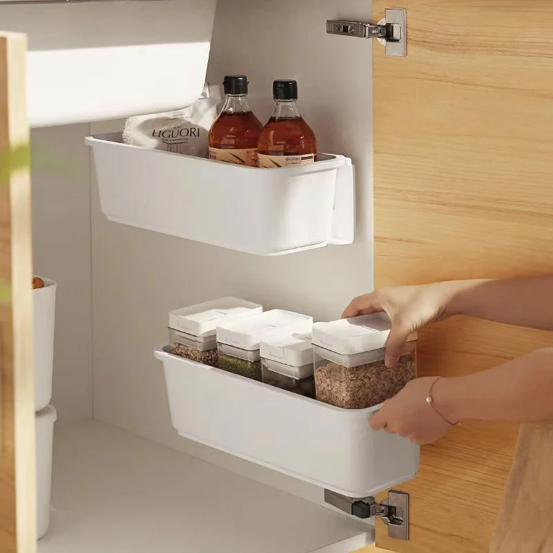 Под раковиной стеллаж для хранения выдвижной шкаф корзина организаторов кухонный Органайзер из пластика вешалка для шкафа дом-контейнер с Accessrioes