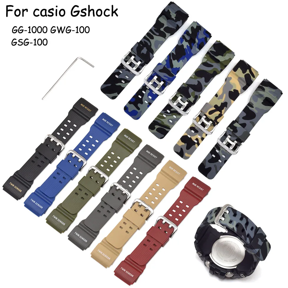 Камуфляж смолы ремешок для наручных часов для объектива с оптическими зумом Casio G-SHOCK GG-1000 GWG-100 GSG-100 спортивный резиновый ремешок для часов браслет Водонепроницаемый браслет