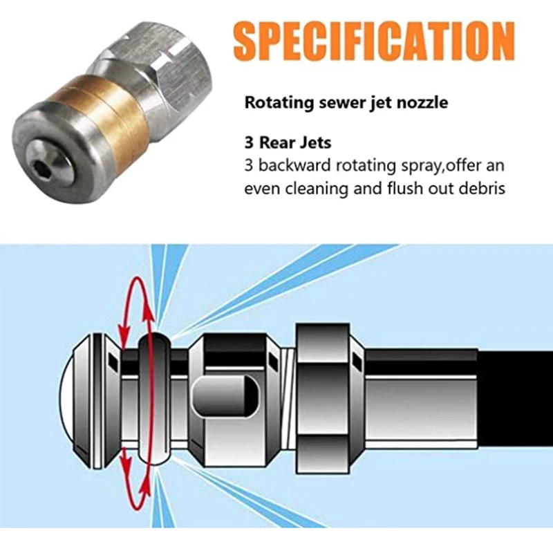 Описание товара:Мойка высокого давления комплект для очистки канализационных трубОсобенности:Шланг очень прочный и может противостоять погоде, маслу, озону и истиранию.3 кнопки носы, 1 Передняя струя при 0 °, чтобы очистить засорение в трубе, 3 задние струи при 33 ° выталкивает вперед и моет свободный мусор перед. Отверстие: 4,0, 4,5, 5,5.Вращающееся сопло вращается на 3 задних струи при 33 ° для дробеструйной обработки, вода распыляется в заблокированную трубу, чистый и смывной мусор. Отверстие: 4,5.Работа с большим количеством электрических и газовом топливе, установка для мытья под давлением до 4000 фунтов на квадратный дюйм.Подходит для горячей и холодной воды.Характеристики:Максимальное давление: до 4000 фунтов на квадратный дюймПосылка включает:1 шланг для мойки под давлением,1 x Кнопка нос-отверстие 4,0,1 x вращающееся сопло,1 x Karcher внутренние аксессуары для резьбы1 x M22-14 твердая латунь,1 x лента для уплотнения резьбы,1x1/4 "быстрый разъем.Примечание:Всегда отсоедините аксессуар, когда закончите его использование. Не оставляйте фитинг без присмотра или под давлением, когда он не используется.
