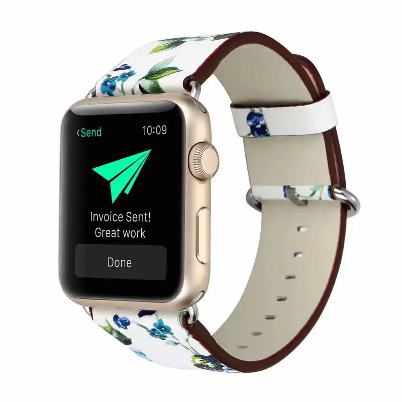Кожаный ремешок с цветочным узором для Apple Watch Band SE7 6 5 4 3...