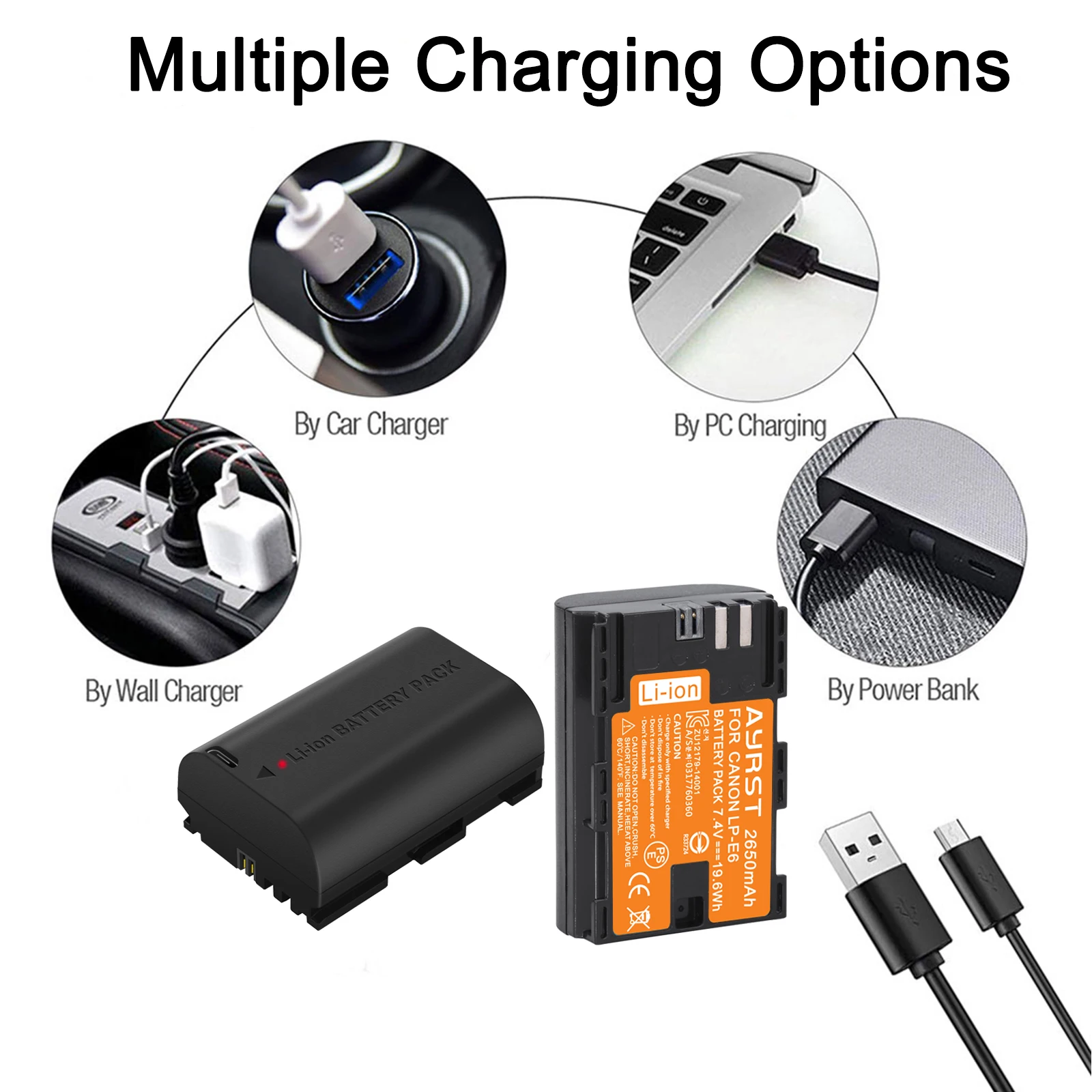 Аккумулятор 2650 мА ч LP-E6 LP E6 LPE6, двойное зарядное устройств...