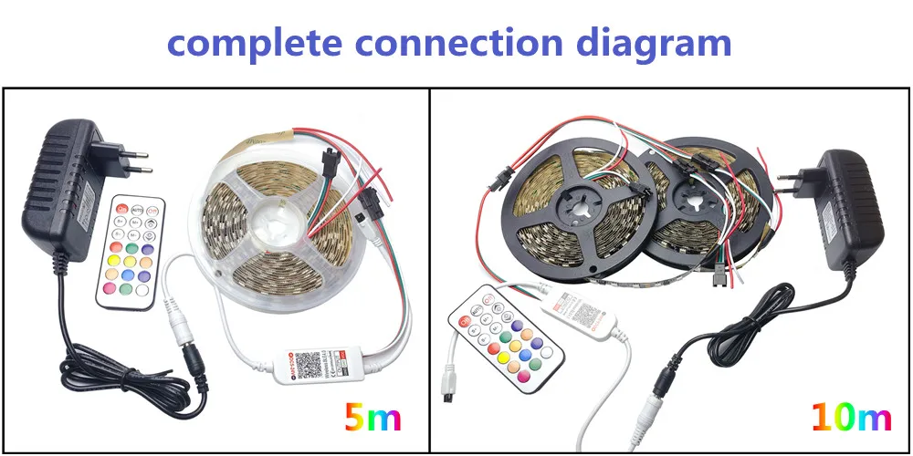 ◆ 60 светодиодов/м набор:5 м с адаптером питания 3A; 10 м с адаптацией мощности 5A