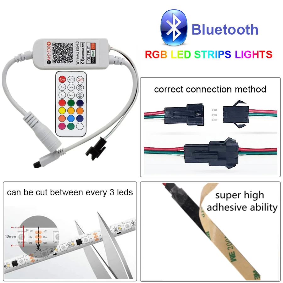 Светодиодная лента WS2811 с адаптером и Bluetooth-контроллером, 510 м