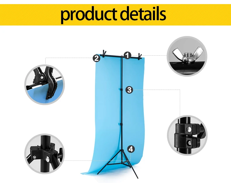 Эта подставка для фона используется для профессиональной фотостудии. Он очень подходит для съемки вещей и портретов, удобен в хранении и переноске. Светильник штатив: несколько размеров, регулируемый, стабильный и прочный. Перекладина: легко регулировать и устанавливать.Пружинный зажим: Фиксированные элементы предотвращают выскальзывание, используются для ткани для фона.