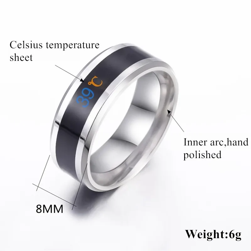 Модный умный термо-пары кольцо Температура кольцо Титан Сталь настр...