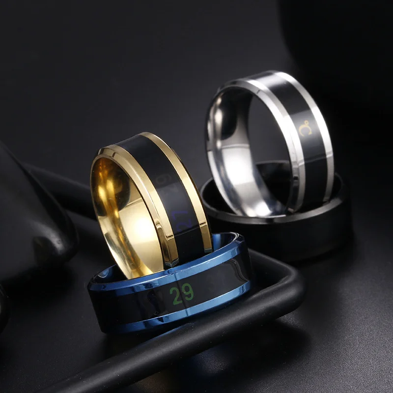Умное кольцо из нержавеющей стали с датчиком температуры тела, модное отображение в режиме реального времени, кольца на палец для проверки температуры тела