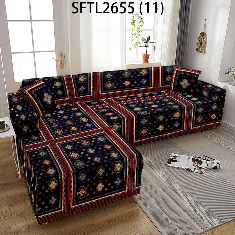 Эластичный чехол для дивана в винтажном стиле, чехол в богемном стиле для углового дивана, кушетки, протектор для стула, требуется 2 предмета, с цифровым принтом